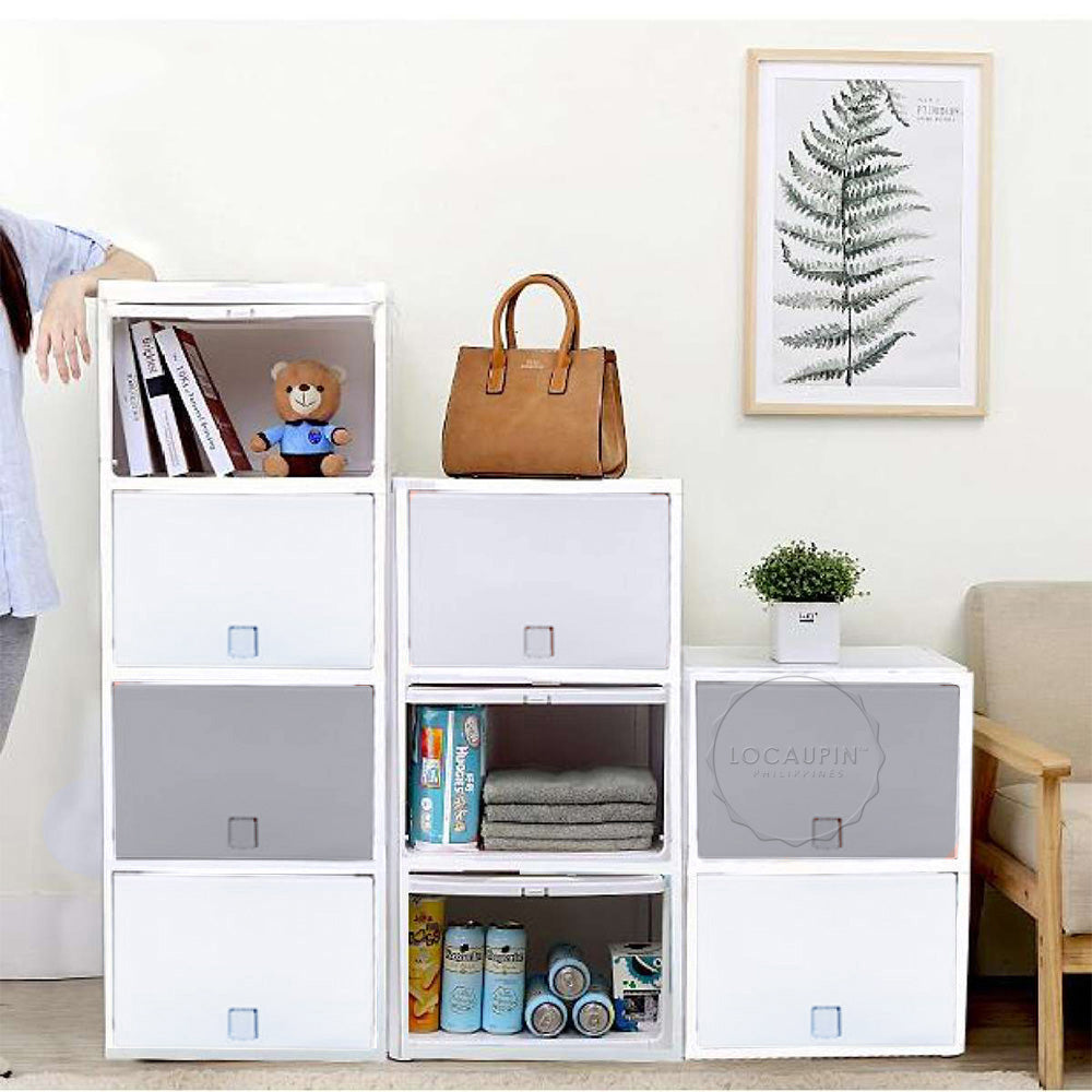 4 Tier PP Plastic Wardrobe Storage Cabinet Shelf Organizer