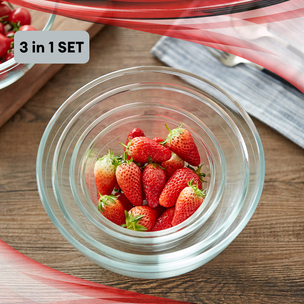 Locaupin Borosilicate Glass All Purpose Round Salad Bowl Food Container Mixing Fruit Prepping Serving Dessert Snack