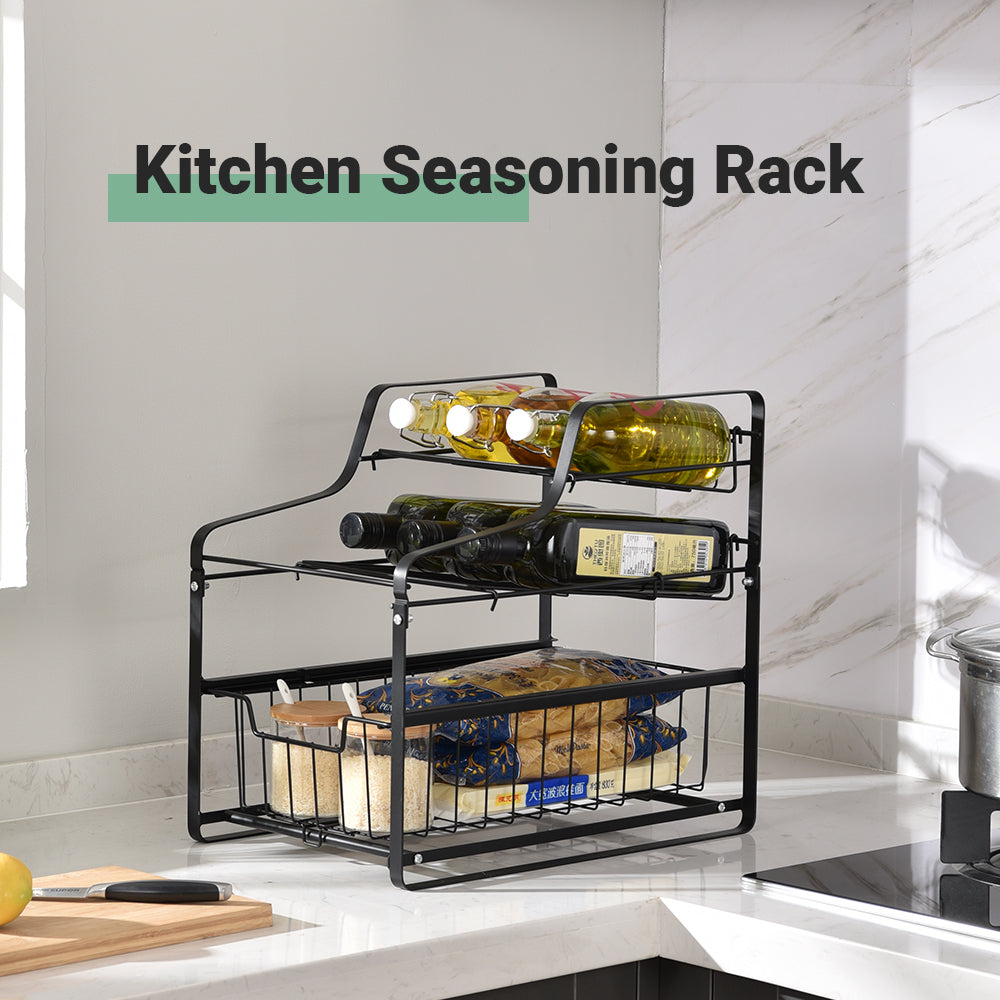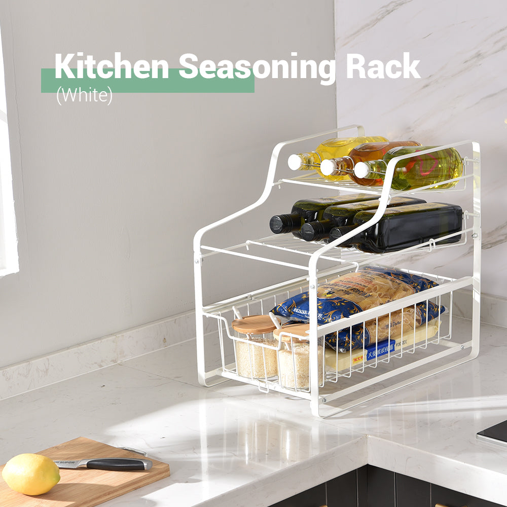 Locaupin 3-Tier Countertop Seasoning Holder Spice Rack Storage Drawer Basket Wire Shelf Pantry Kitchen Organizer