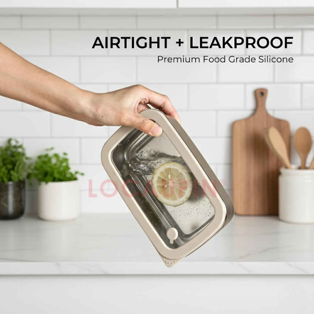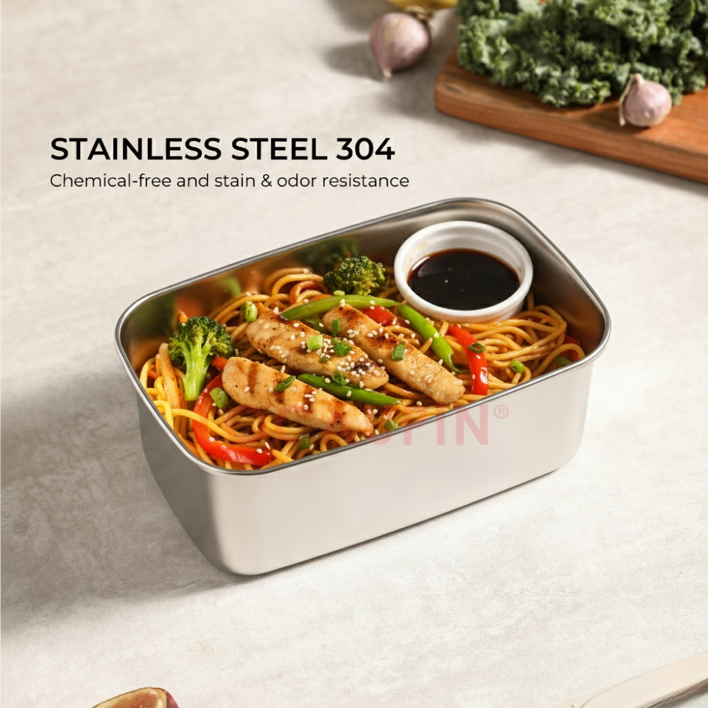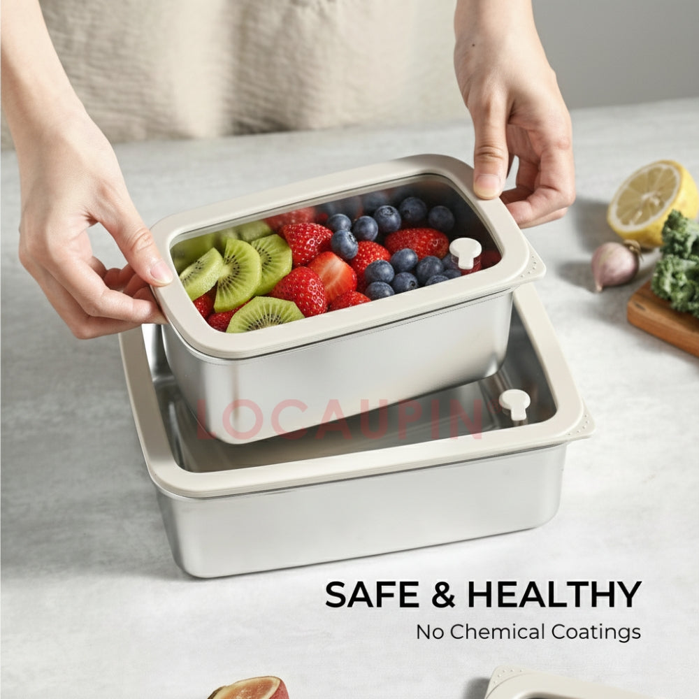 Product Description: Tired of plastic containers that stain, warp, or leave you worrying about chemicals? Meet the LOCAUPIN Stainless Steel Food Keeper, the premium, health-conscious choice for storing your meals. Expertly crafted from high-quality 304 Stainless Steel and durable tempered glass, this container set is designed to keep your food fresher, longer, without any of the downsides of plastic. It's the perfect, versatile solution for meal prep, lunches, pantry storage, and on-the-go freshness.
