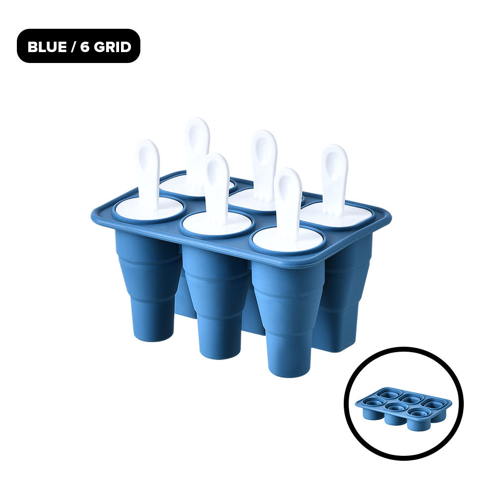 Locaupin 6 Grid Foldable Popsicle Mold Easy Release Food Grade Silicone Tray Homemade DIY Ice Cream Stick Maker for Kids