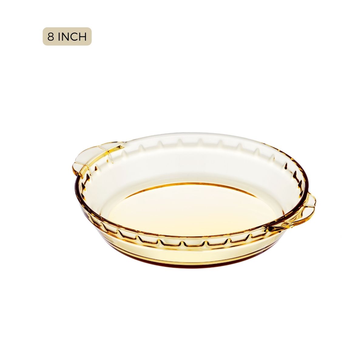 LOCAUPIN Borosilicate Glass Round Vintage Baking Tray Microwavable Oven Safe Pan Serving Plate