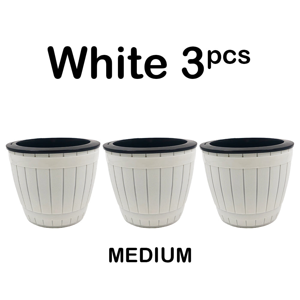Locaupin Creative Imitation Wood Pattern Flower Pot Self Watering Planter with Drainage Hole Indoor Outdoor Plant Container