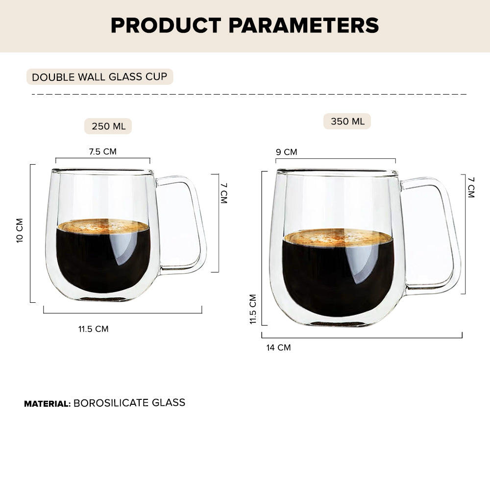 - Double Wall Design: Keep your fingers safe and cool with heat resistant and double wall glassware, so beverages stay warm without you getting burnt!