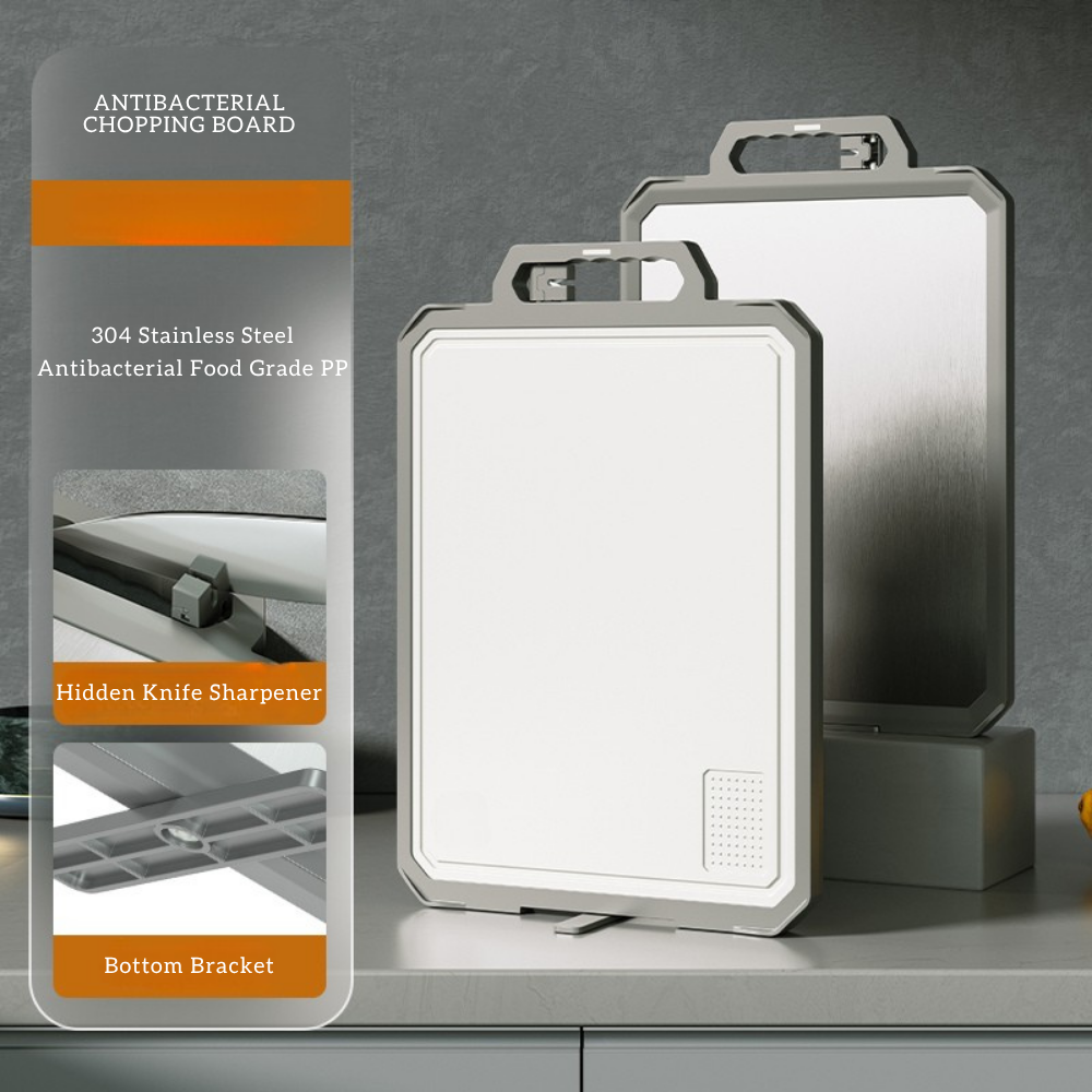 Locaupin Double-Sided Chopping Board with Hidden Knife Sharpener and Bottom Bracket Standing Design Multipurpose Kitchen Use