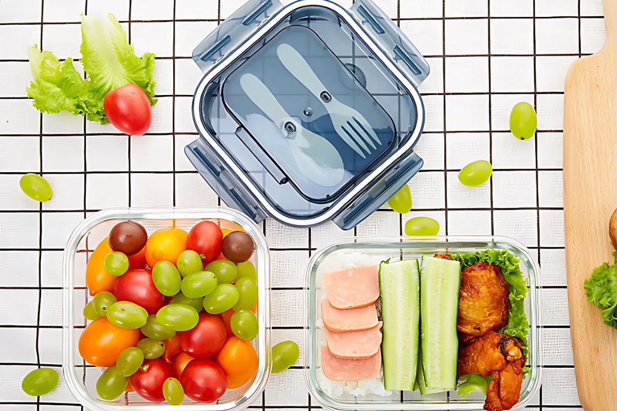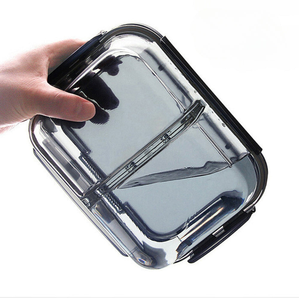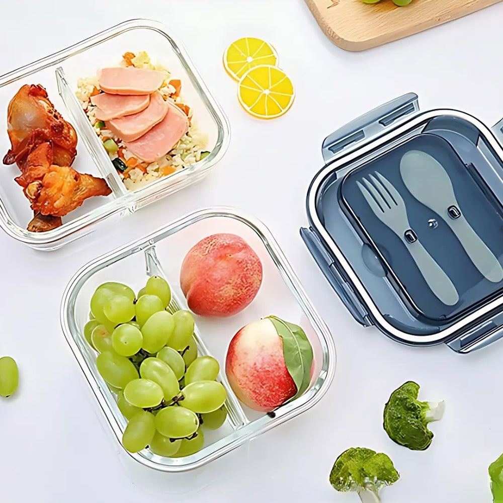 LOCAUPIN Glass Lunch Box with Spoon and Fork Microwavable Oven Safe Divider Food Storage Container