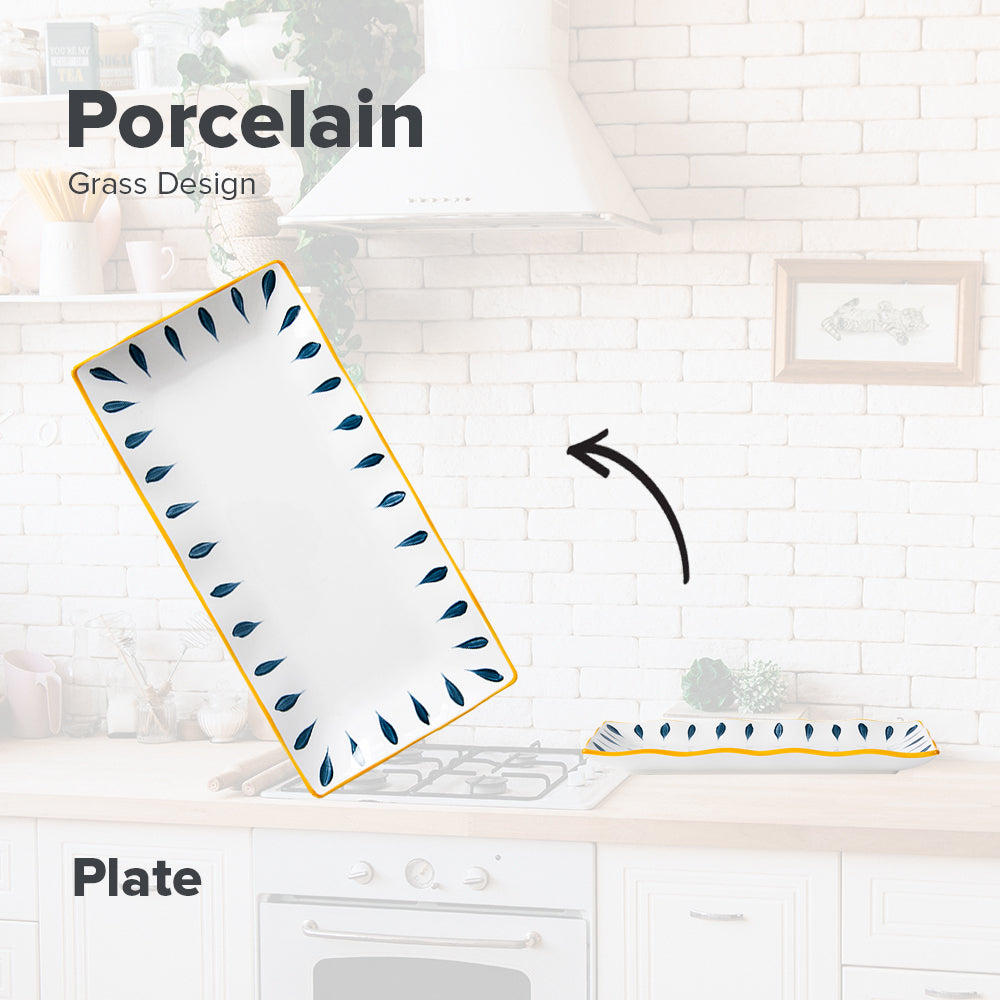 Locaupin Grass Pattern Japanese Style Porcelain Tableware Dining Plate Dip Sauce Compartment Pasta Soup Bowl Serving Dish Platter Dessert Saucer
