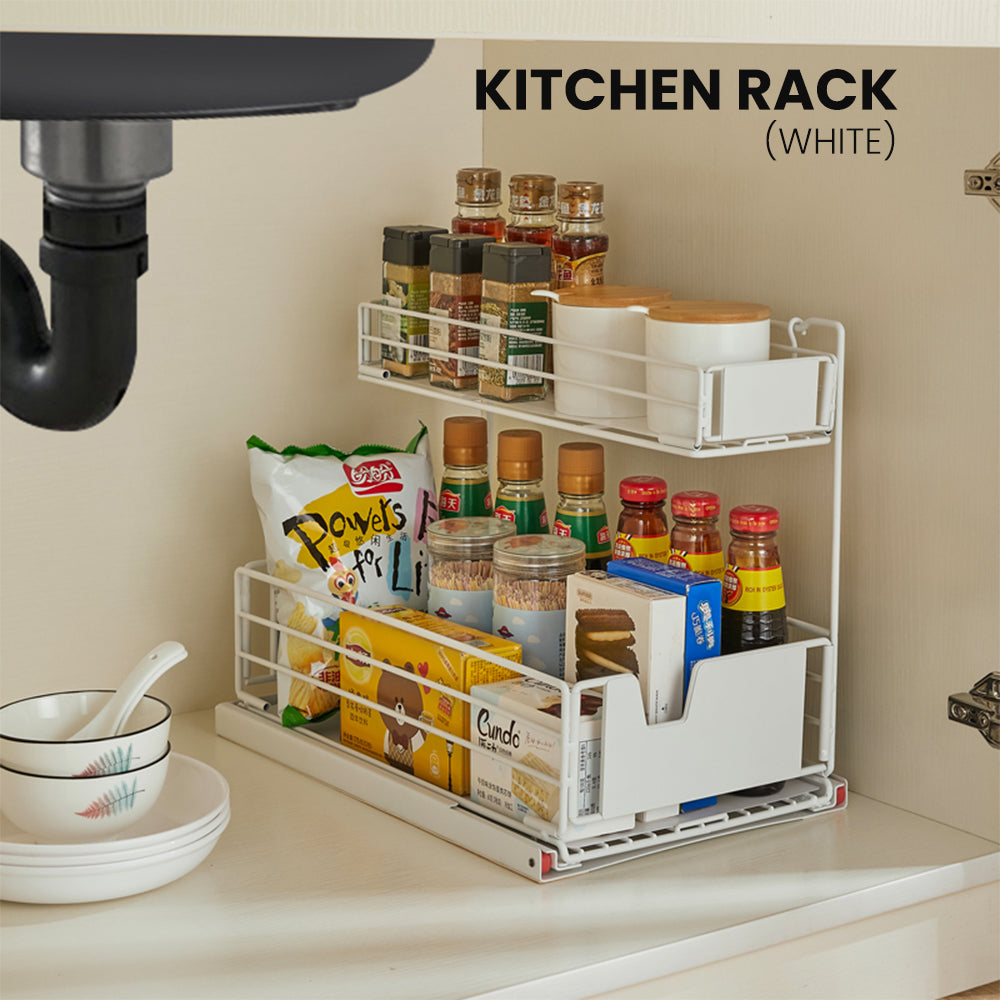 Locaupin Kitchen Rack Storage Cabinet Replacement Pull-out and Pull-in Drawer Organizer Seasoning Rack Save Space