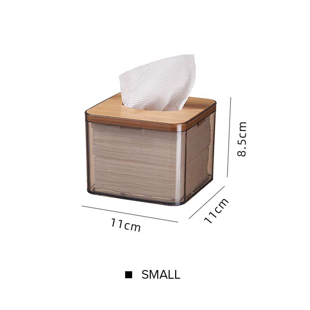 PREMIUM?QUALITY?-?The?tissue?box?holder?is?made?of?bamboo?cover?lid?and?PET?body?material.?It?ensures?you?a?long-term?durability.?The?body?is?not?clear?PET?plastic,?it?is?slightly?tint.