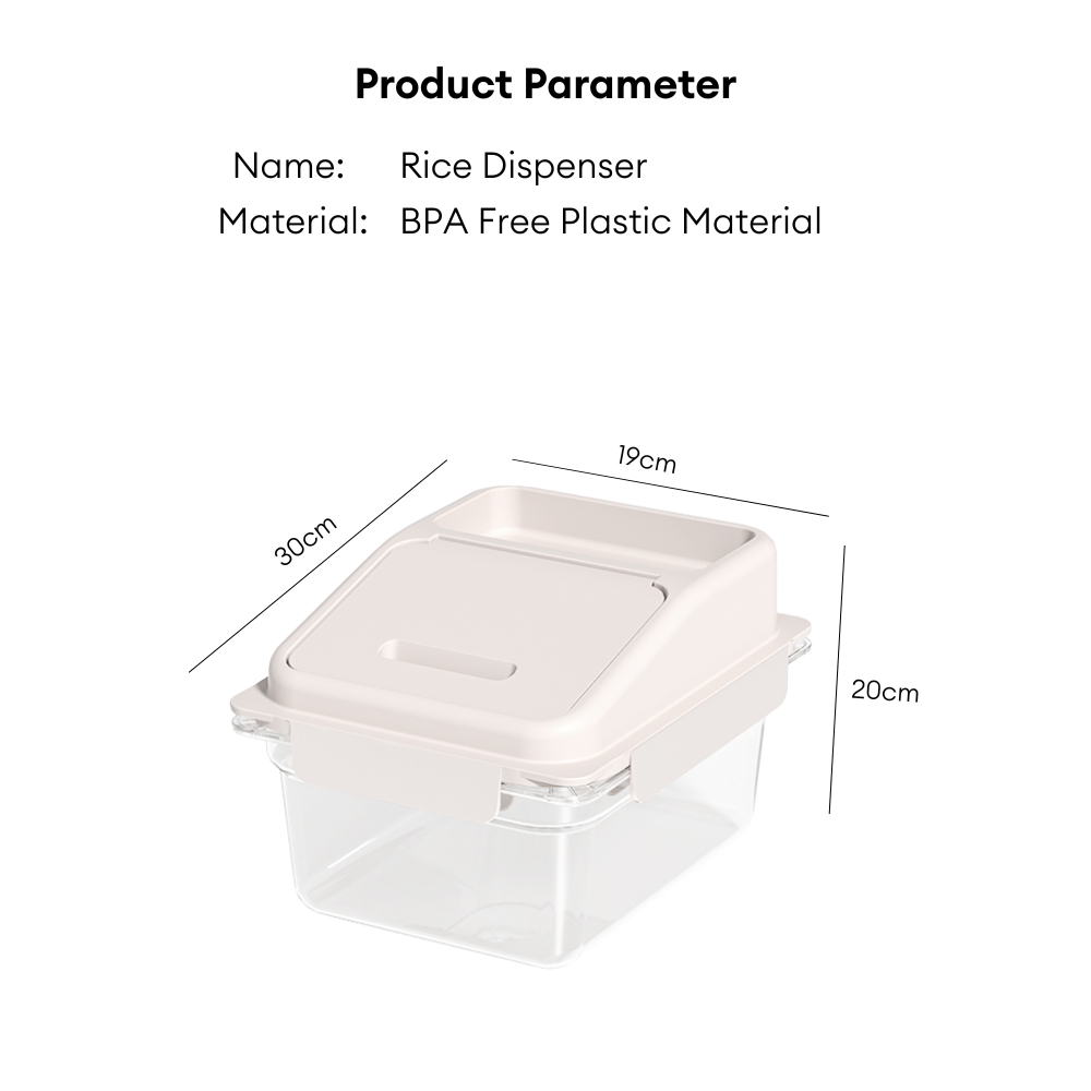 Product Description: Simplify your kitchen storage and keep your staples fresh with this innovative Multifunctional Rice Dispenser. Designed for convenience and hygiene, this dispenser is the perfect solution for organizing your rice, grains, beans, and more. Crafted from high-quality, BPA-free, non-toxic, and food-safe plastic, you can be confident that your food is stored in a safe and healthy environment.