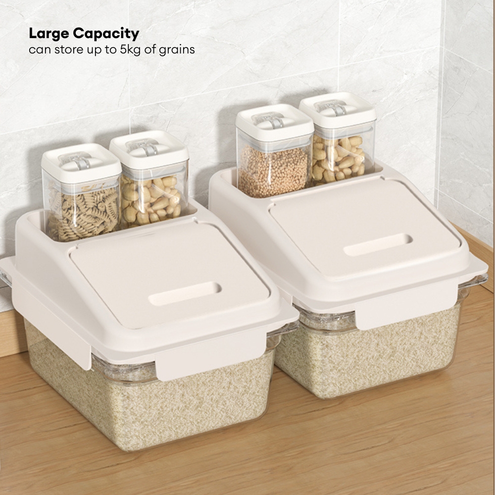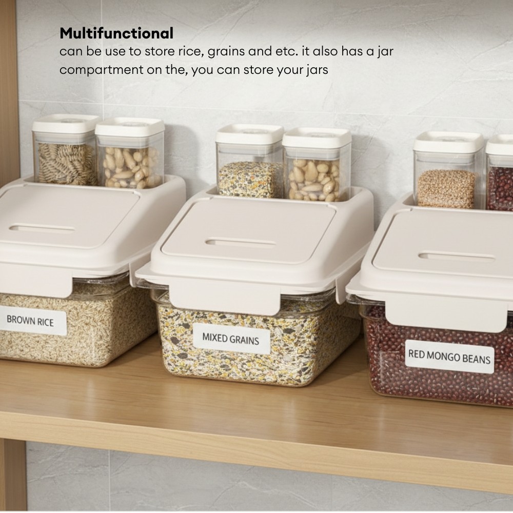Multifunctional & Organized: More than just a rice container, it can store a variety of dry goods like brown rice, mixed grains, and beans. It also features a dedicated jar compartment on the front, providing a convenient spot to store smaller items or spices for a complete, organized kitchen solution.