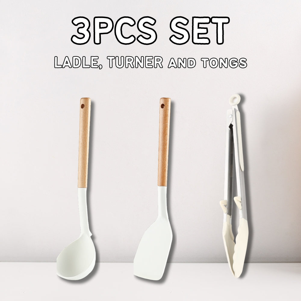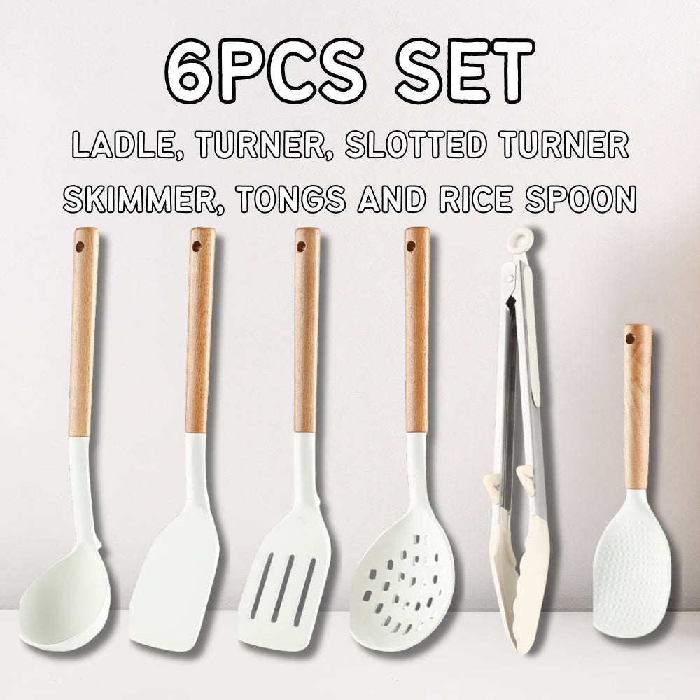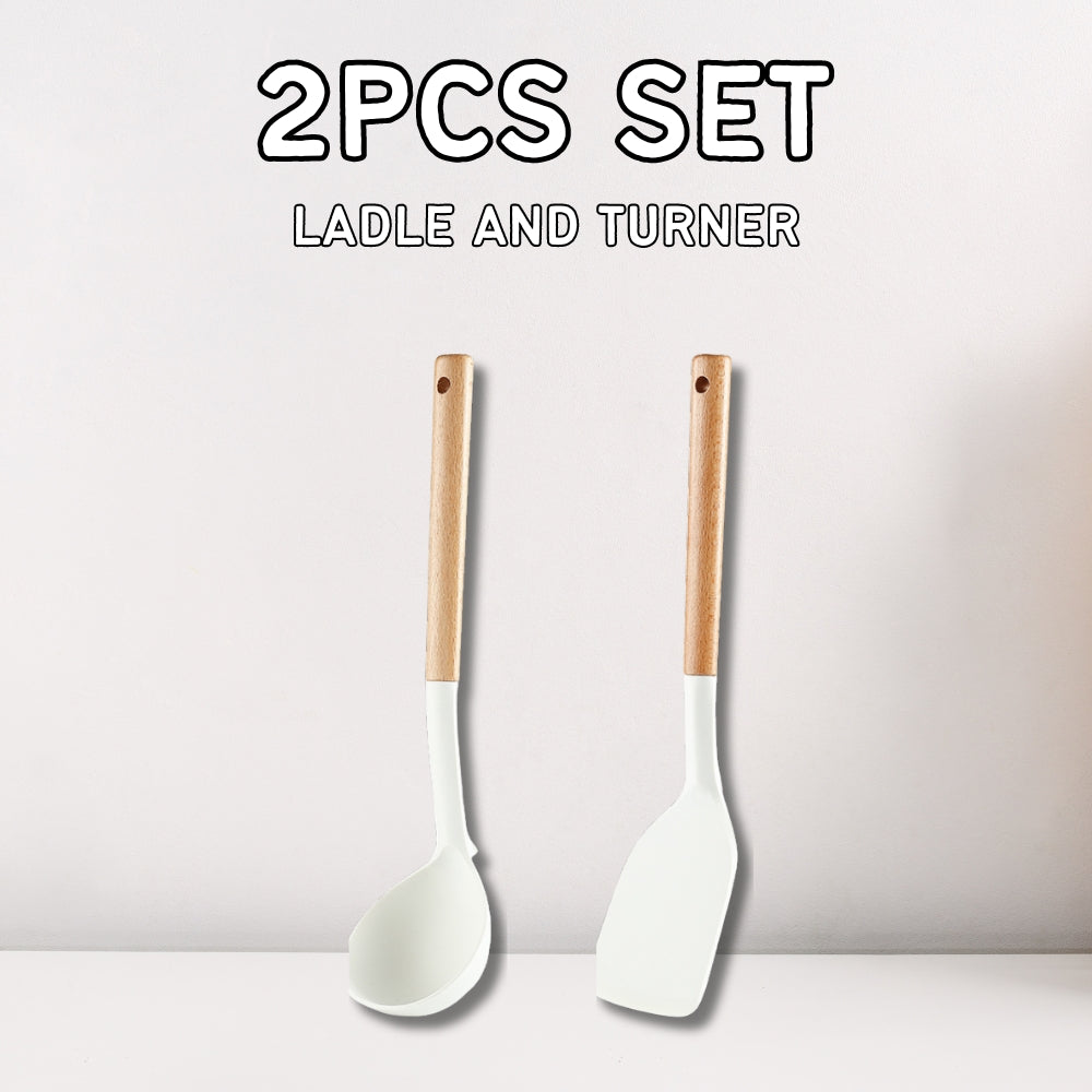 Locaupin SET Silicone Cooking Utensil Non Stick Heat Resistant Kitchen Tools with Wooden Handle Food Grade High Quality Cookware