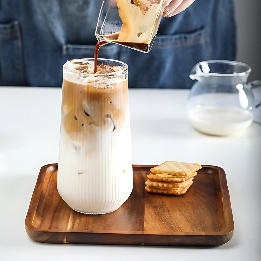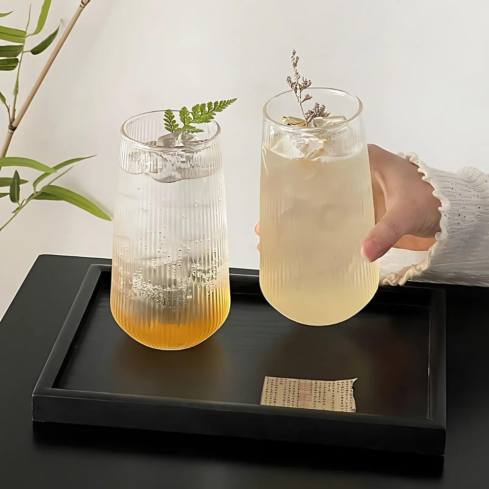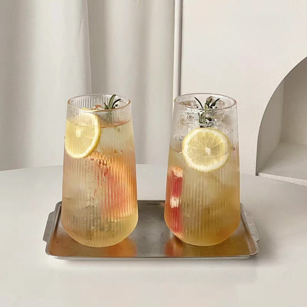 Locaupin Transparent Stripe Design Glass Cup Borosilicate Drinking Mug Heat and Cold Beverages Juice Coffee Tea Water Glassware