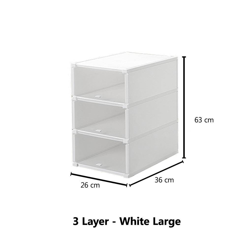Say Goodbye to Mess: Stackable shoe storage boxes amazing for dust free and maximizing storage space. Create a shoe tower with door lid design.